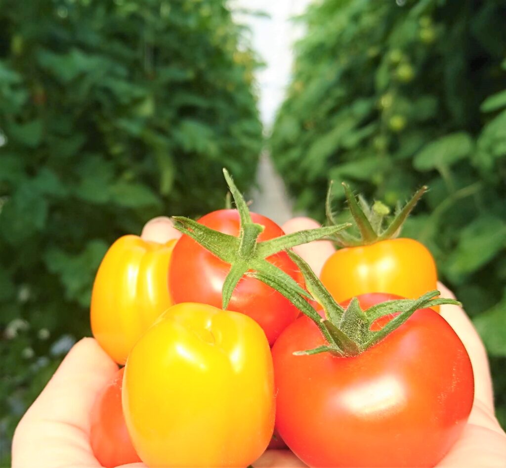 I vårt växthus odlar vi ekologiska tomater och gurka som också de är certifierade av KRAV och EU ekologiskt. Vi planterar i början av mars och plockar de första gurkorna i början av april medan tomaterna brukar mogna lagom till Valborg. Sedan sträcker sig säsongen vanligtvis långt in i november, så under nästan åtta månader om året kan vi erbjuda er fantastiska grönsaker som odlats med omtanke om dig, vår jord, vår miljö, vårt klimat, och om oss som arbetar i växthuset.